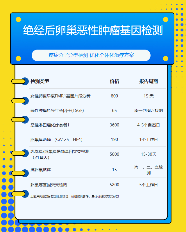 泰安绝经后卵巢恶性肿瘤基因检测套餐参考推荐