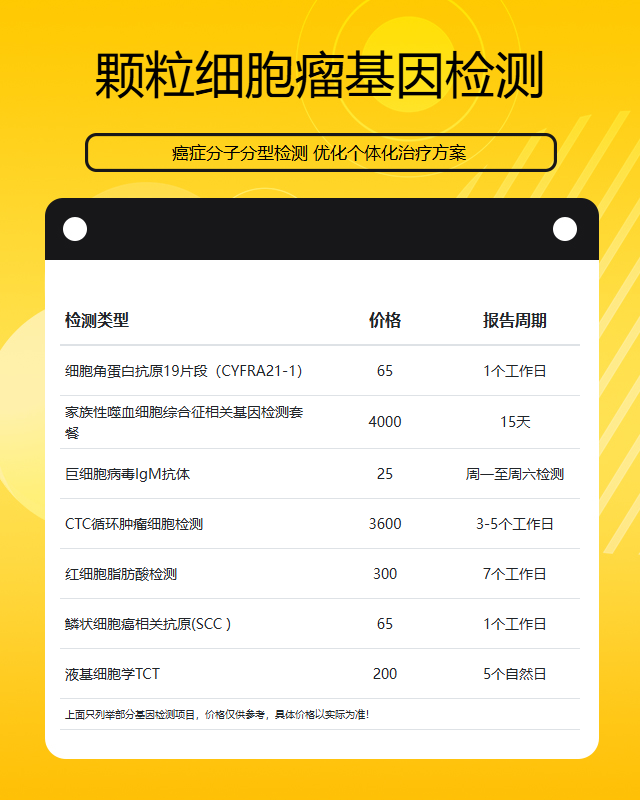 莆田颗粒细胞瘤基因检测套餐参考推荐