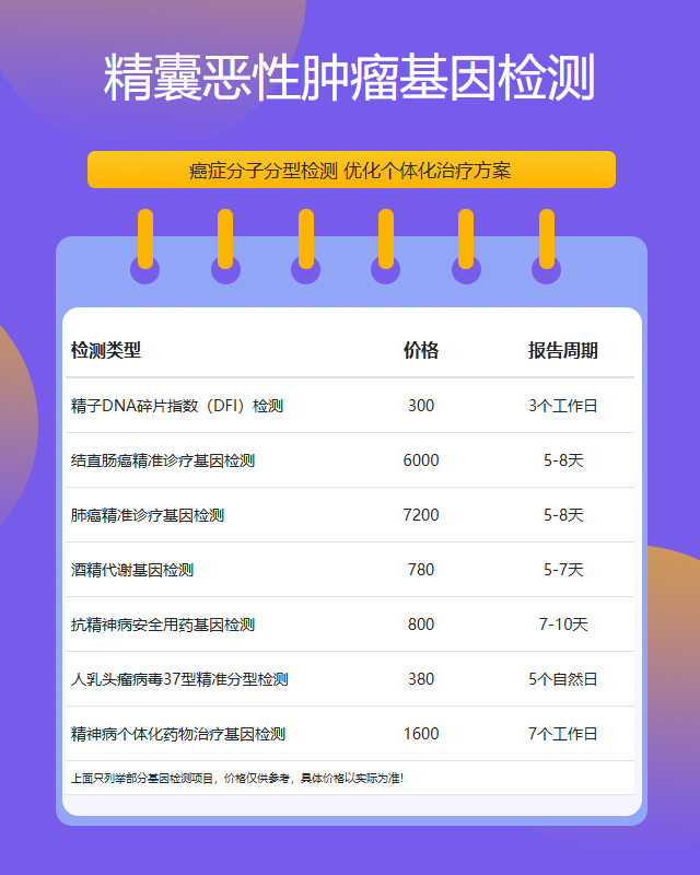 3. 检测项目覆盖:优质检测应包含与精囊恶性肿瘤相关的核心基因,如TP53、PTEN等,同时关注最新研究进展。