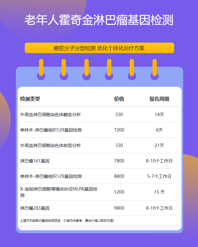 温州老年人霍奇金淋巴瘤基因检测套餐参考推荐