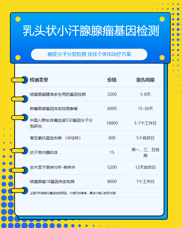 菏泽乳头状小汗腺腺瘤基因检测套餐参考推荐