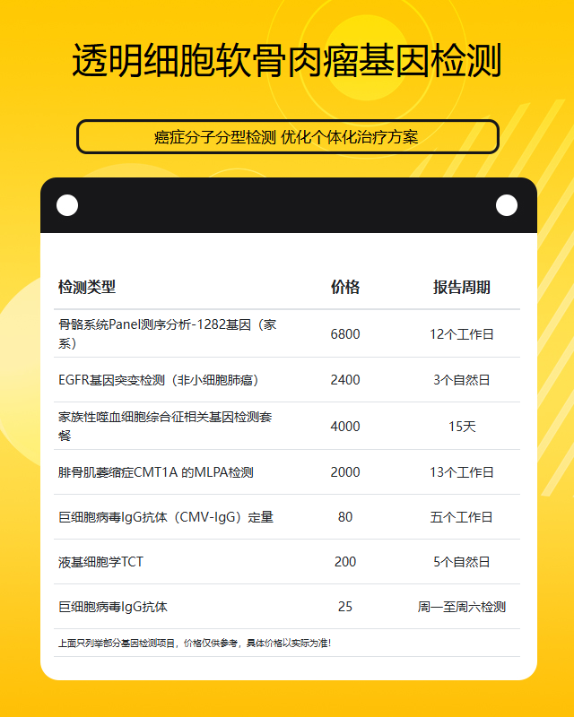 镇江透明细胞软骨肉瘤基因检测套餐参考推荐