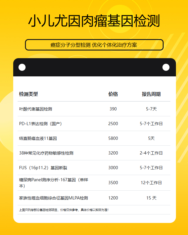 武汉小儿尤因肉瘤基因检测套餐参考推荐