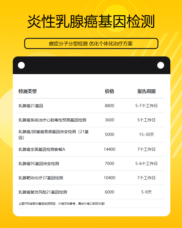 蚌埠炎性乳腺癌基因检测套餐参考推荐