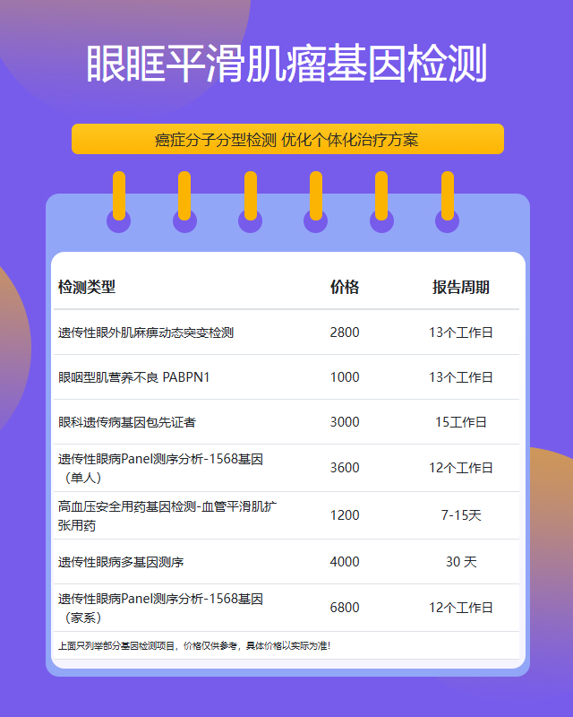 惠州眼眶平滑肌瘤基因检测套餐参考推荐