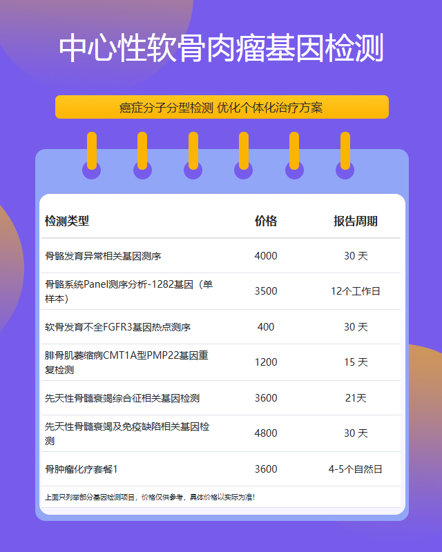 烟台中心性软骨肉瘤基因检测套餐参考推荐