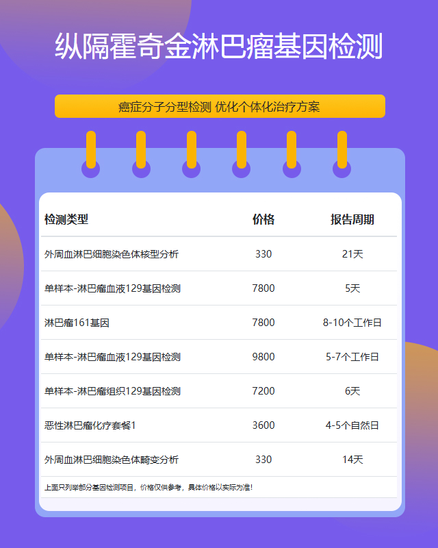济宁纵隔霍奇金淋巴瘤基因检测套餐参考推荐