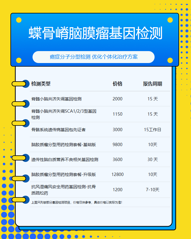 呼和浩特蝶骨嵴脑膜瘤基因检测套餐参考推荐