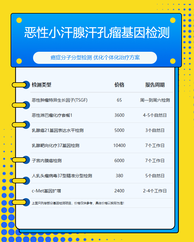 安庆恶性小汗腺汗孔瘤基因检测套餐参考推荐