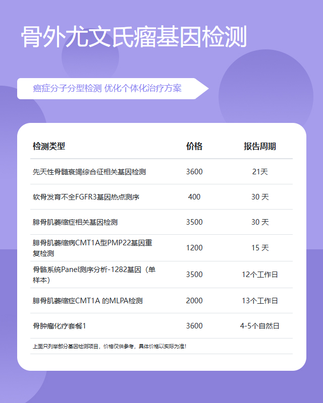 潍坊骨外尤文氏瘤基因检测套餐参考推荐