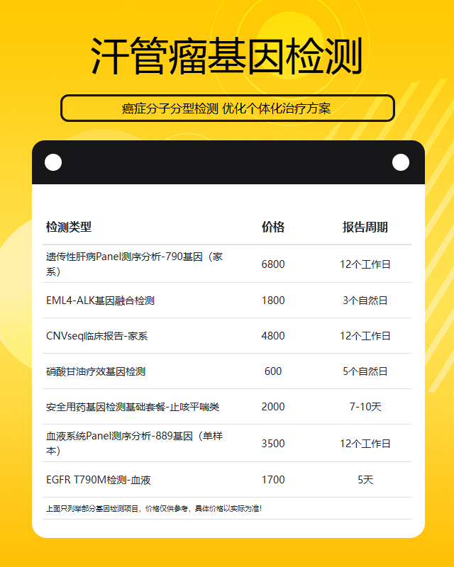 咨询范围:安全用药基因检测、染色体异常基因检测、妇幼专项基因检测、单基因检测、遗传疾病基因检测、全外显子基因检测、癌症基因检测、易感基因检测、肿瘤基因检测等,提供#汗管瘤# #白血病# #粘液瘤# #额叶肿瘤# #脊髓肿瘤# #颅内动脉瘤# #卵巢浆液性肿瘤# #尿道旁腺癌# #皮脂腺腺瘤# #乳腺纤维肉瘤# #腮腺混合瘤# #网状细胞肉瘤# #小儿骨肉瘤# #胸壁软组织肿瘤# #牙瘤# #胰腺囊肿#等肿瘤基因检测综合业务咨询服务。