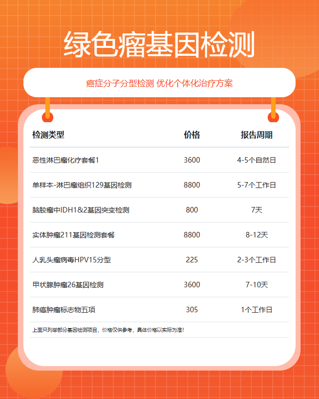 上海绿色瘤基因检测套餐参考推荐
