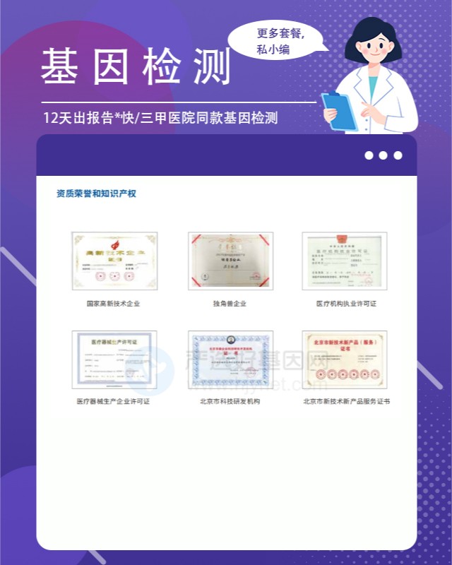 中云基因网合作的基因检测机构,通常提供以下几种类型的检测套餐: