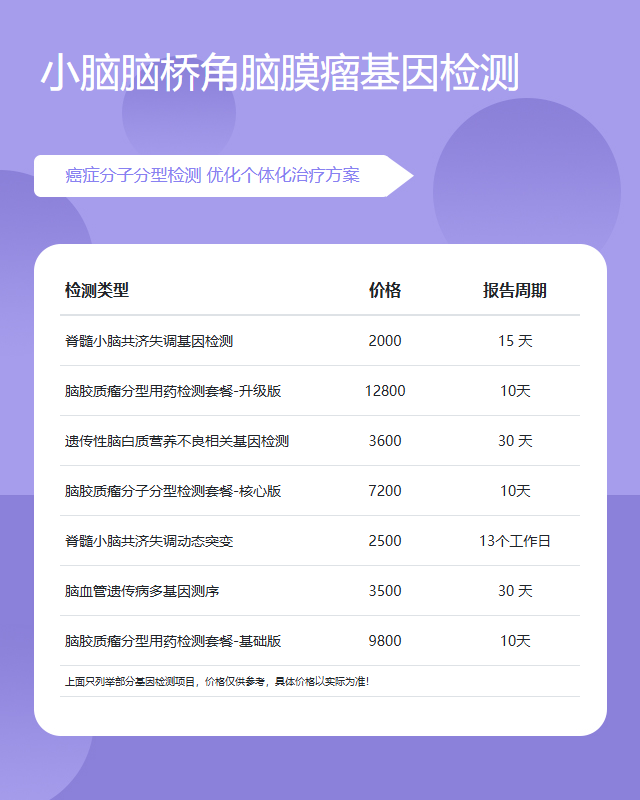 赣州小脑脑桥角脑膜瘤基因检测套餐参考推荐