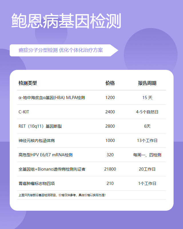 济宁鲍恩病基因检测套餐参考推荐