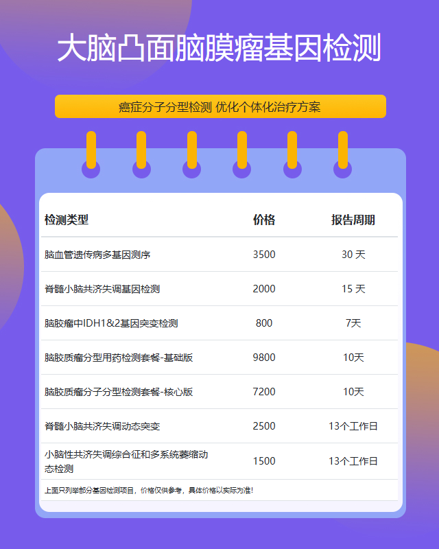 重庆大脑凸面脑膜瘤基因检测套餐参考推荐