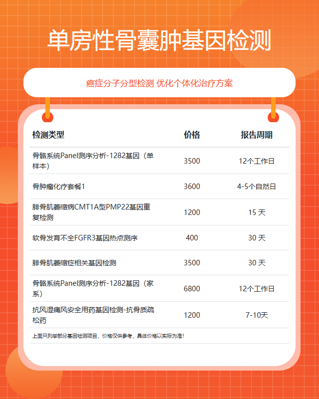 潮州单房性骨囊肿基因检测套餐参考推荐