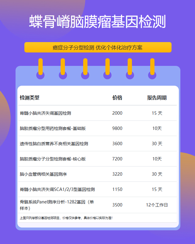 深圳蝶骨嵴脑膜瘤基因检测套餐参考推荐