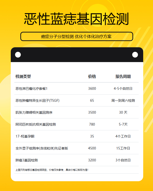 咨询范围:单基因检测、妇幼专项基因检测、肿瘤基因检测、易感基因检测、癌症基因检测、遗传疾病基因检测、安全用药基因检测、全外显子基因检测、染色体异常基因检测等,提供#恶性蓝痣# #甲状腺癌# #精原细胞瘤# #软骨瘤# #鼻窦鳞状细胞癌# #大汗腺癌# #多发内生软骨瘤病# #肺部少见的肿瘤# #骨淋巴瘤# #骨淋巴管瘤# #骨神经纤维瘤# #急性杂合性白血病# #脑膜癌病# #脾脏原发性肿瘤# #小儿肝母细胞瘤# #咽部混合瘤#等肿瘤基因检测综合业务咨询服务。