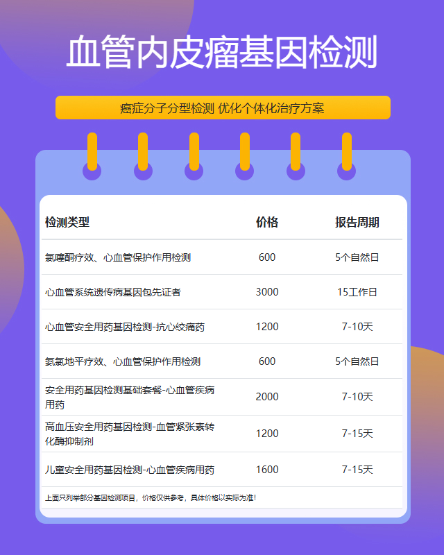 运城血管内皮瘤基因检测套餐参考推荐