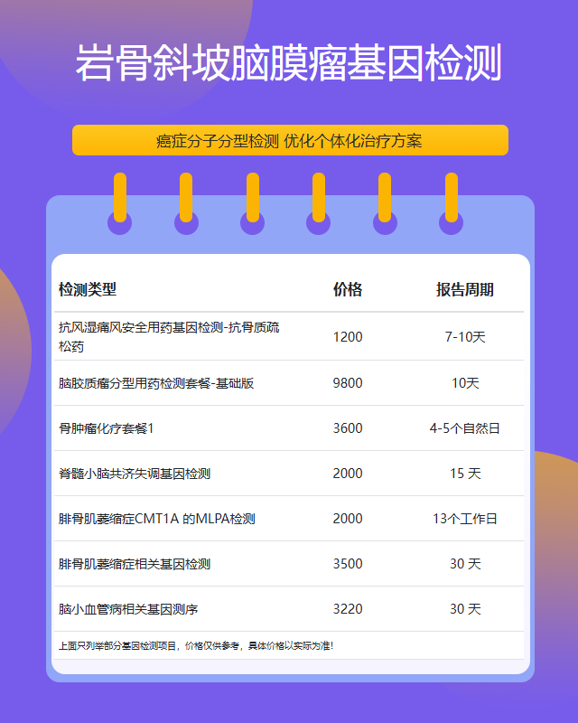 无锡岩骨斜坡脑膜瘤基因检测套餐参考推荐