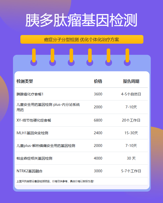专业检测机构通常采用高通量测序技术,覆盖与胰多肽瘤相关的多个基因位点,如MEN1、DAXX/ATRX等。检测灵敏度、特异性及数据分析能力是评价服务质量的关键指标。部分机构还可能提供肿瘤组织与血液样本的对照检测,以提高结果准确性。