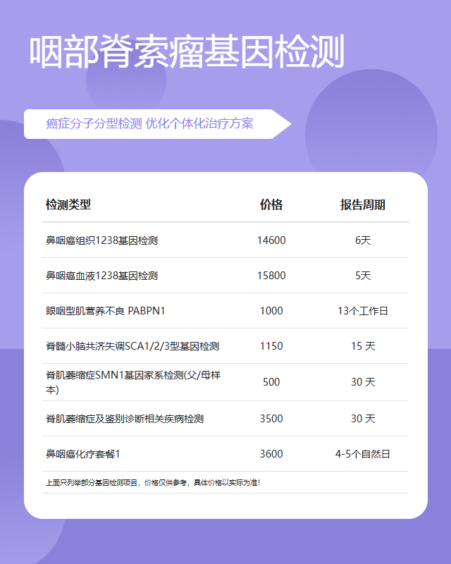 天津咽部脊索瘤基因检测套餐参考推荐