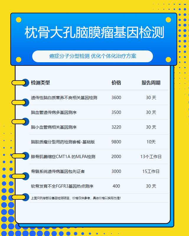 盐城枕骨大孔脑膜瘤基因检测套餐参考推荐