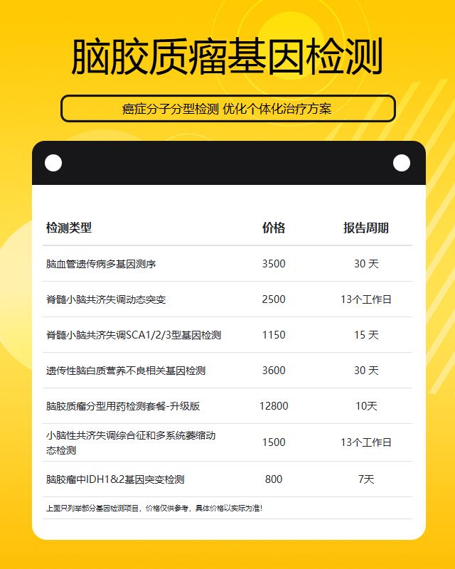 徐州脑胶质瘤基因检测套餐参考推荐