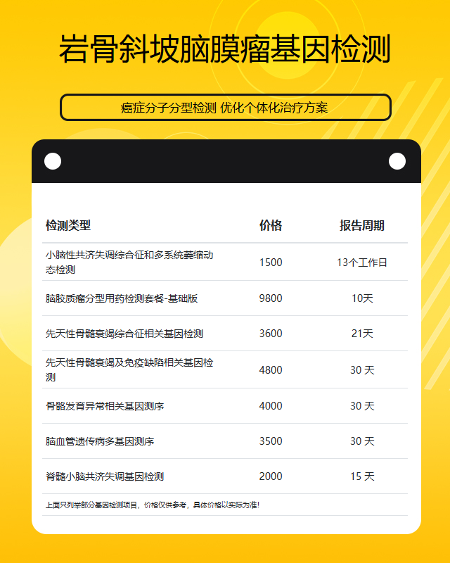 中山岩骨斜坡脑膜瘤基因检测套餐参考推荐